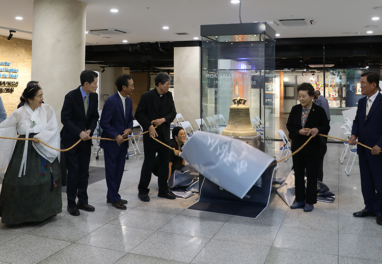 서상돈 종 제막식이 9월 16일(화) 오후 3시 국채보상운동기록전시관에서 개최되어 교구장 조환길(타대오) 대주교가 참석했다. 이 종은 일제강점기 민족운동가이자 대구대교구 기초를 마련한 서상돈(아우구스티노) 회장과 김 젤마나 여사의 세례명을 따 ‘아우스딩 젤마나 종’이라 불리며 120여 년간 주교좌 계산대성당 종탑으로 사용됐다. |