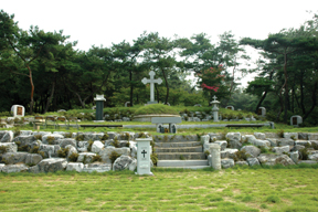 신나무골 성지 입구에 이르러 돌 계단을 오르자 잘 정돈된 순교자 이선이(엘리사벳) 묘가 한눈에 들어온다. 그 주위로 묘지를 감싸듯 십자가의 길이 이어져 있다. 머리 위로 바로 떨어지는 7월의 뙤약볕과 시끄러울 정도로 울어대는 매미소리에 마음이 흔들리던 것도 잠시, 이내 기도하는 마음으로 성지를 향해 발걸음을 옮겨본다.