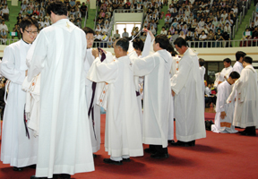 무더운 날씨 속에서도 성김대건기념관을 가득 메운 신자들과 수도자, 사제들은 새 부제 및 사제품을 받는 후보자들에게 하느님의 은총이 충만하길 기도하며 그리스도를 닮은 목자가 되기를 기원했다.